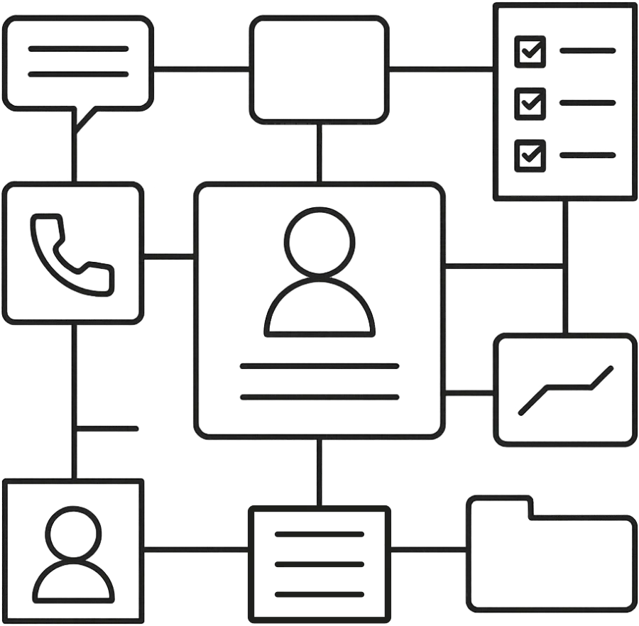 Every interaction — calls, texts, emails, forms — stays in a single timeline so your team always knows the next step.